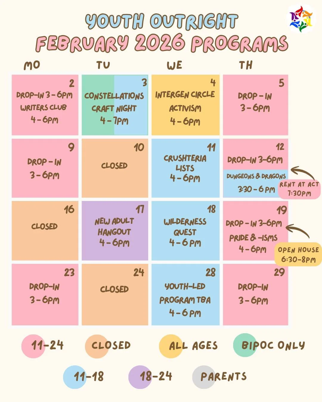 Sign up for our newsletter and follow our Instagram @youth.outright for the most up-to-date information about programs.